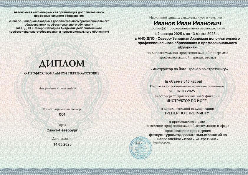 - 2 квалификации: Инструктор по йоге + Тренер по стретчингу