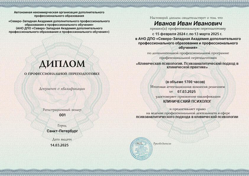 Курс обучения Клиническая психология. Психоаналитический подход в клинической практике (1700ч)