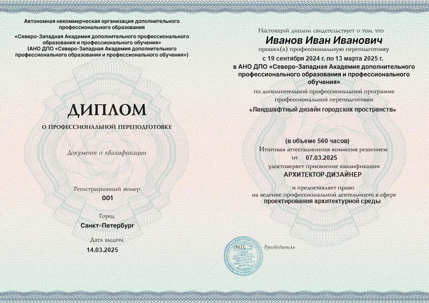 Каждый документ (диплом/удостоверение/свидетельство) соответствует п.2 ст.60 N-273 ФЗ, оформляется на русском языке, печатается на типографском бланке, защищённом от подделок. Ставится официальная печать образовательной организации. С образцами документов можно ознакомиться на сайте в разделе «Лицензия и документы».