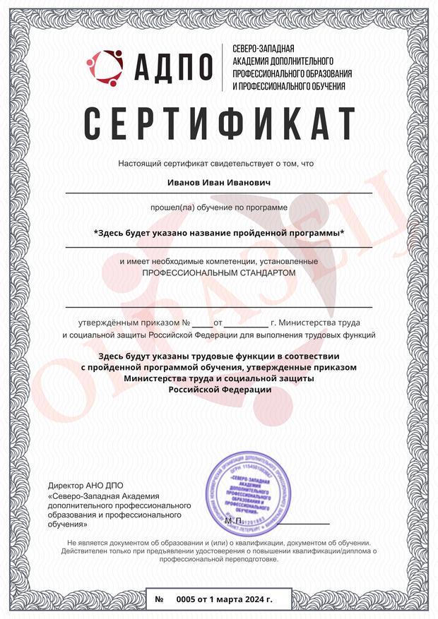 * Сертификат не является документом об образовании и/или о квалификации, документом об обучении.
