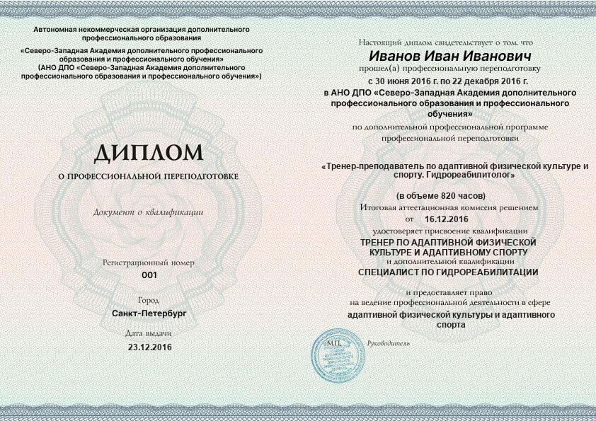 - 2 квалификации: Тренер по адаптивной физической культуре и адаптивному спорту + Специалист по гидрореабилитации