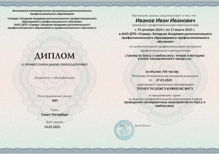 Каждый документ (диплом/удостоверение/свидетельство) соответствует п.2 ст.60 N-273 ФЗ, оформляется на русском языке, печатается на типографском бланке, защищённом от подделок. Ставится официальная печать образовательной организации. С образцами документов можно ознакомиться на сайте в разделе «Лицензия и документы».
