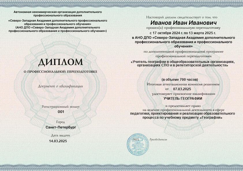Курс обучения Учитель географии в общеобразовательных организациях, организациях СПО и в репетиторской деятельности (700ч)